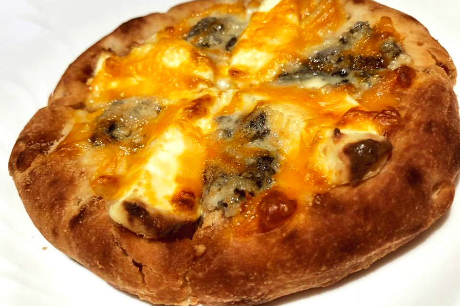 「5種のチーズのフォカッチャピザ」と「黒毛和牛のミニハンバーガーセット」 esCafe/